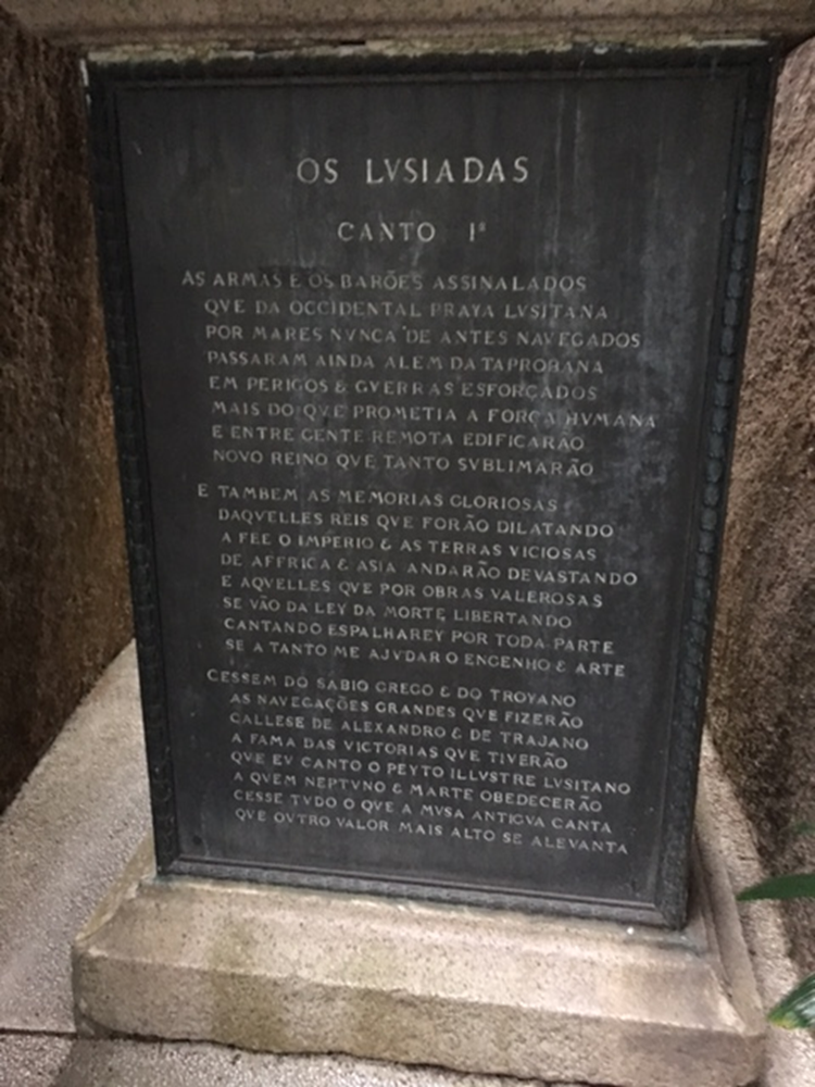 Still in the Camoes Grotto, directly beneath the bust of the poet, is carved an excerpt from Canto I of “Os Luciadas.”