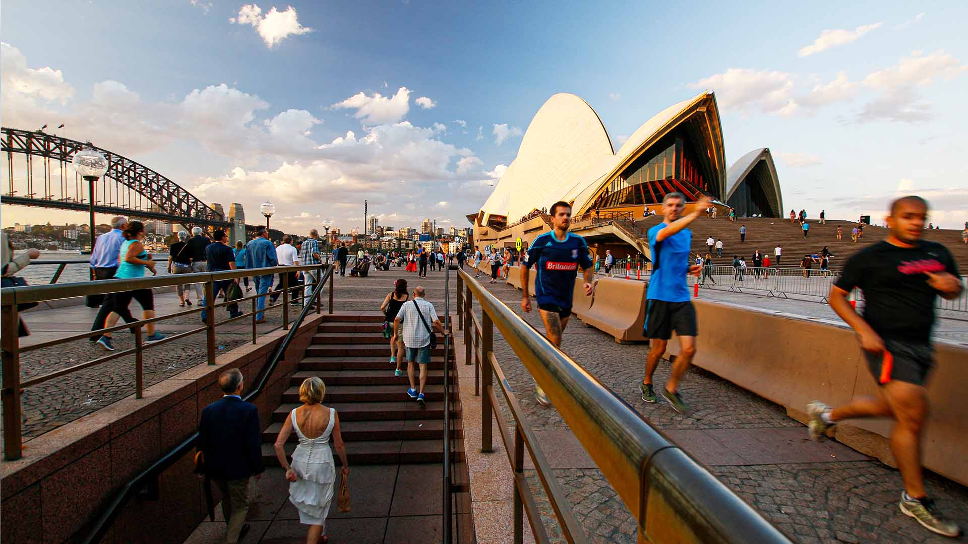 最佳观赏时间是下午。从黄昏到日落,大桥为您提供了绝佳的悉尼观景视角。从环形码头站出发,向西行驶,经过歌剧院(又称“岩石”)对面。经过当代艺术博物馆后,寻找一条上坡路。您可以选择步行过桥或参加导览游。